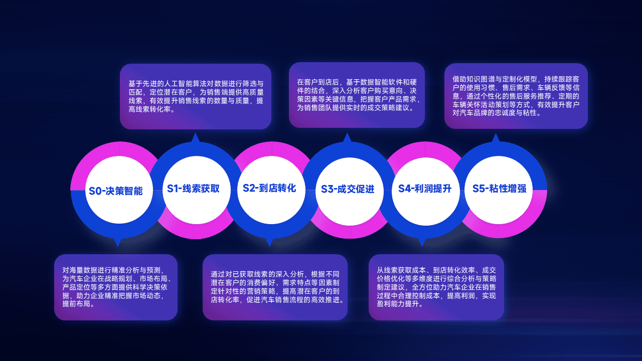 通过拓宽潜在客户来源、、、优化线索分配并提高到店转化率,,以增强销售效率。。。同时,,,利用线索数据不断优化分析模型,,,有效提升转化率,,,扩大营销影响力。。。
